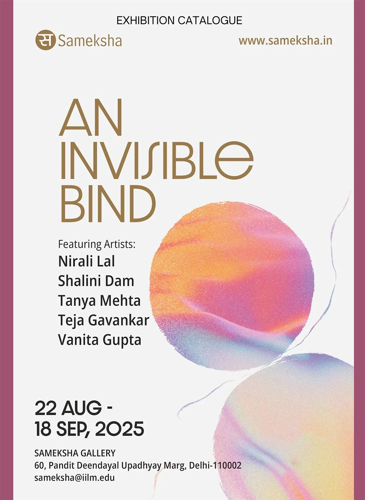 Sameksha Gallery is thrilled to present An Invisible Bind, a compelling group exhibition that emerged from an extraordinary convergence of artistic vision and intellectual discourse. Five remarkable contemporary women artists invite you into a world where invisible threads connect us all-threads that transcend borders, cultures, and time itself.