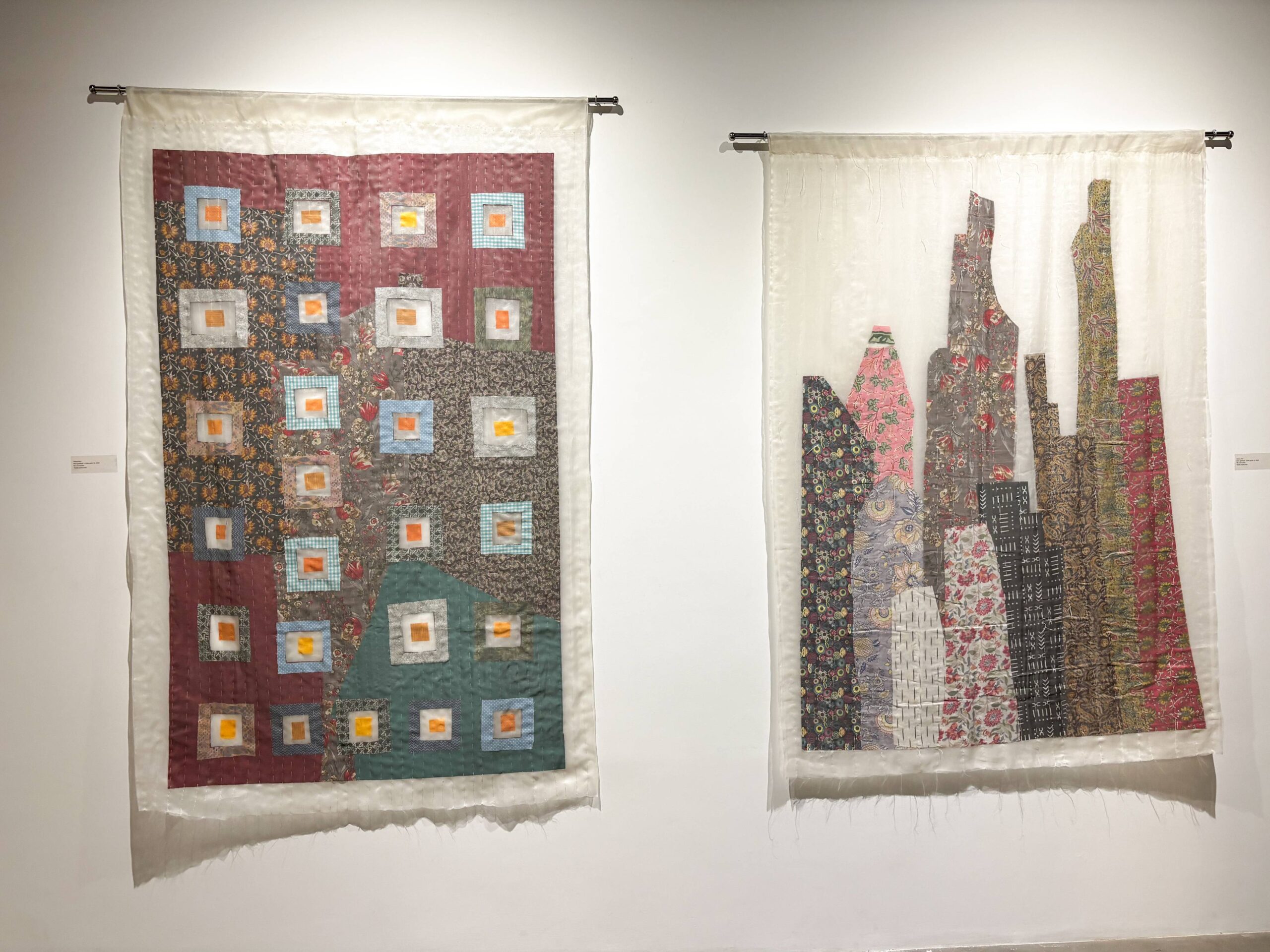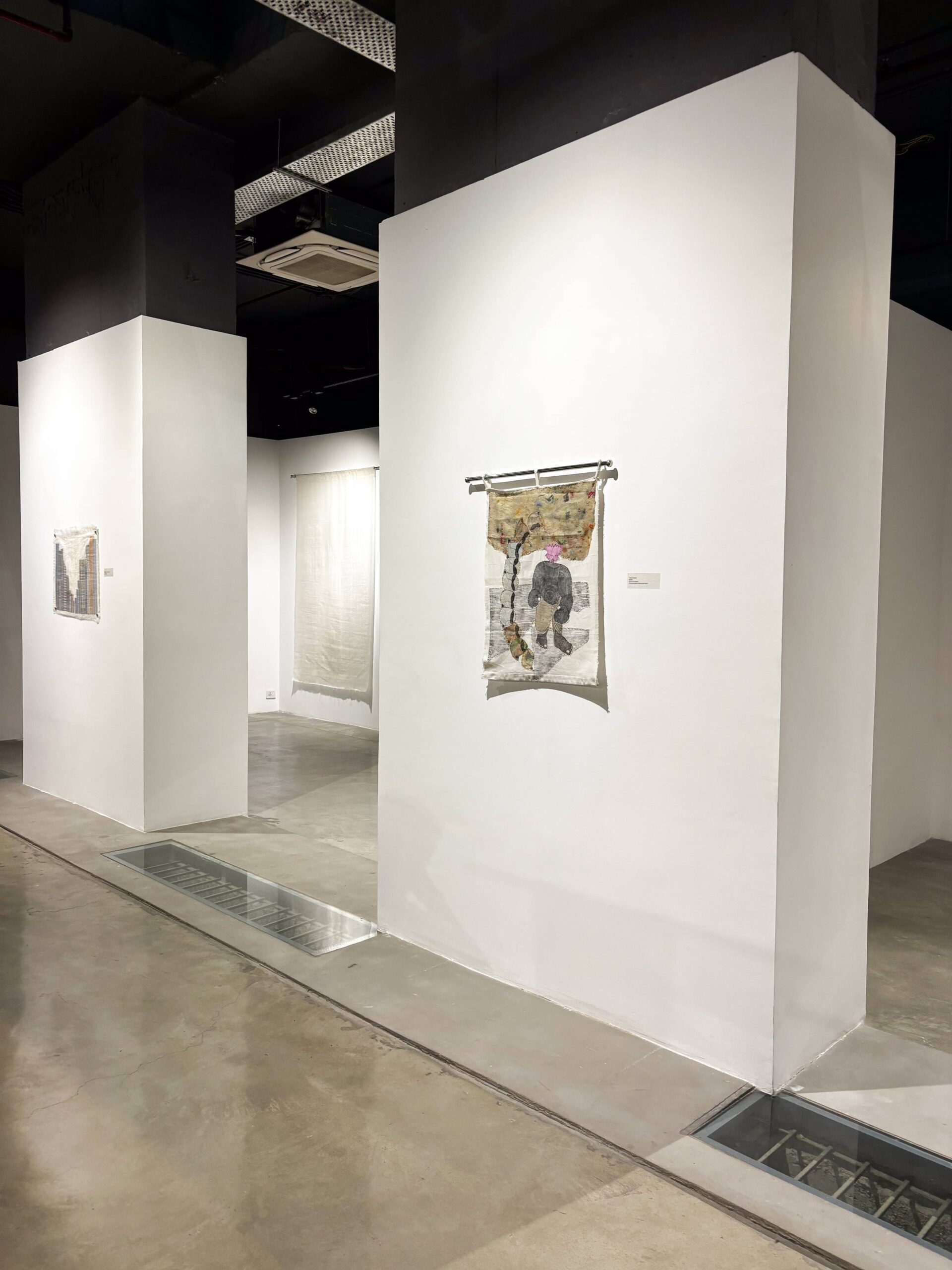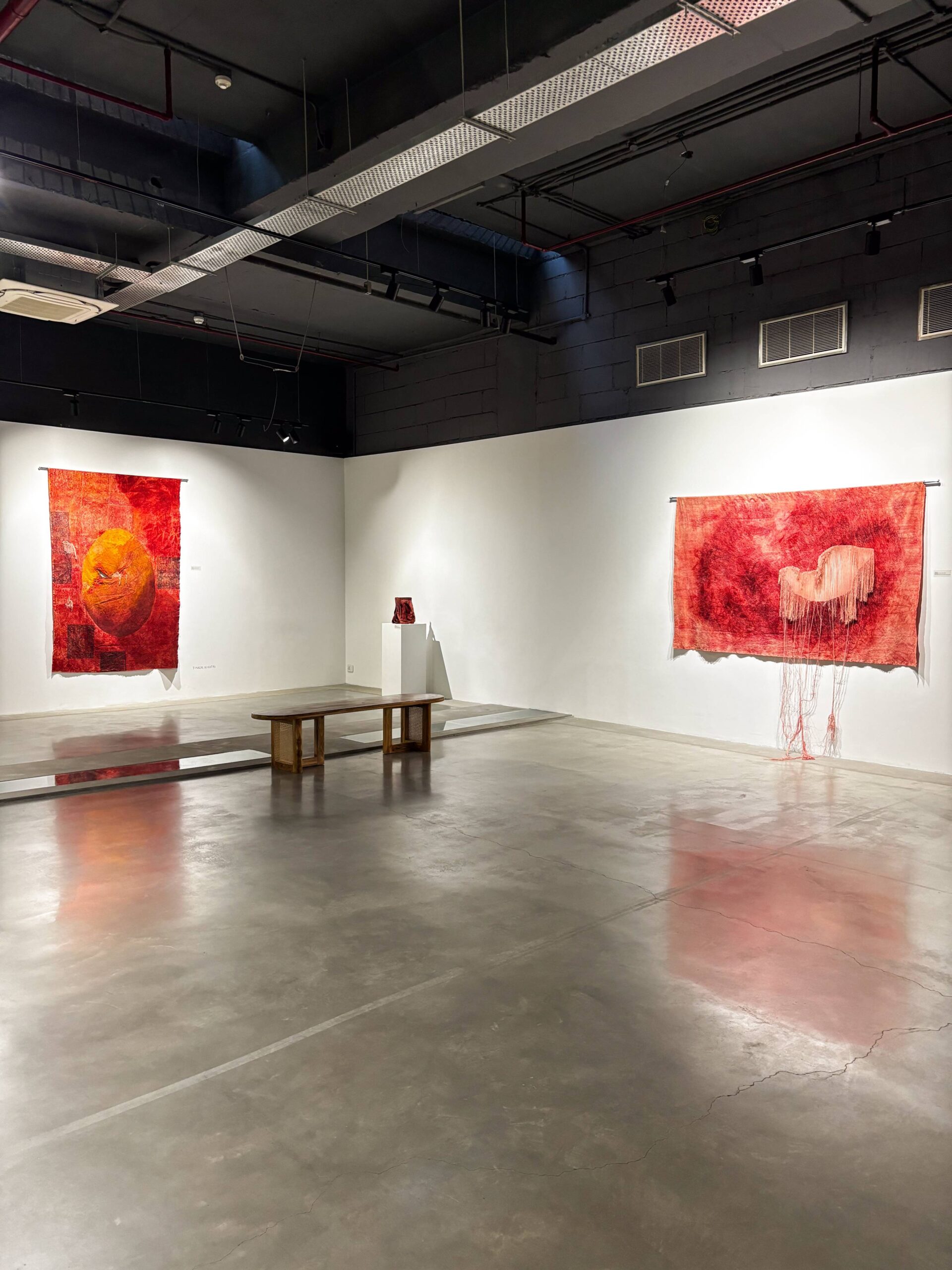 Textiles Unbound showcases six such trailblazers. Swati Kalsi disrupts silk’s finesse in five daring surface experiments, igniting form and color. Pragati Mathur forges copper weaves into an abstract Acacia seed provocation. Tinkal Khatri shatters dyeing’s limits with immersive, controversial depths creating sculptural pieces. Yayati unleashes fluid black lines on patchwork textiles, echoing embroidery’s narrative fire. Chetnaa in collaboration with Prama by Pratima Pandey transforms minimalist paintings into eclectic light-shade weaves. Heena Pari engages with patchwork layers; rhythmic, recycled abstractions pulsing with heritage and heresy.